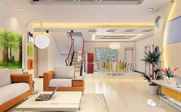 目前,房間的凈高普遍比較低,大約在2.50米到2.80米之間。為了不致產(chǎn)生壓抑感,在頂部處理上以簡(jiǎn)單為好。從人的視覺習(xí)慣上來(lái)講,房間的頂部是最不被重視的地方,所以也沒必要做得太復(fù)雜。