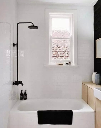 <p>黑白空間未免單調(diào),用彩色浴巾增添亮點(diǎn)。</p>