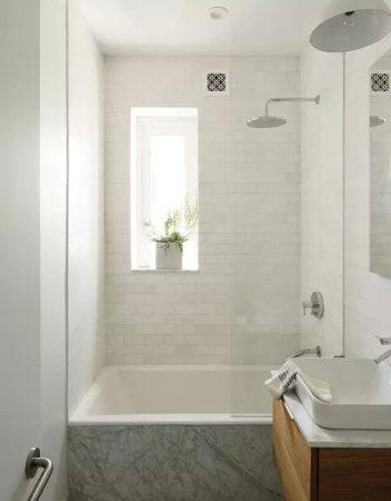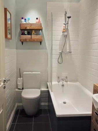 <p>窄衛(wèi)生間正好放小浴缸,雖然緊湊,但是功能足夠。</p>