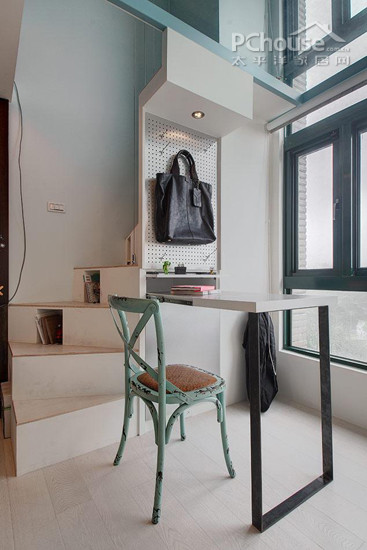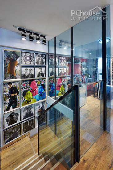 照片墻:復式樓梯的墻面空間是一整面的照片裝飾墻,夸張的色彩與表情讓人心情大好,這樣的裝飾既時尚又具創(chuàng)意感。