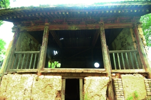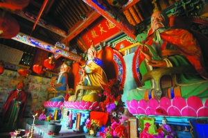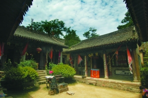 馮金生熱情好客,邀我們到他家,歇息片刻再上山,盛情難卻,只得應(yīng)允。過一座小橋,沿著水渠而行,濃蔭蔽日,很是清涼。這就是復(fù)興村了。這個村子也是伯陽鎮(zhèn)所在地,舊時又叫做馮家莊,因?yàn)樽钤绫敬宓木用窠^大部分姓馮,故有此名。后來,才改為現(xiàn)在的名字。果然,在村口附近我們看到了一座馮氏祠堂。