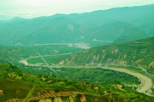 當(dāng)站在高高的伯陽山上時,突如其來的欣喜,就籠罩了每一個人。山谷里,渭水繞了個大彎,不緊不慢地流淌著,水邊的川里,高高矮矮的房屋,隨意散布,山間綠樹成林,公路上車來車往。山下不遠(yuǎn)處就是伯陽小鎮(zhèn)了。