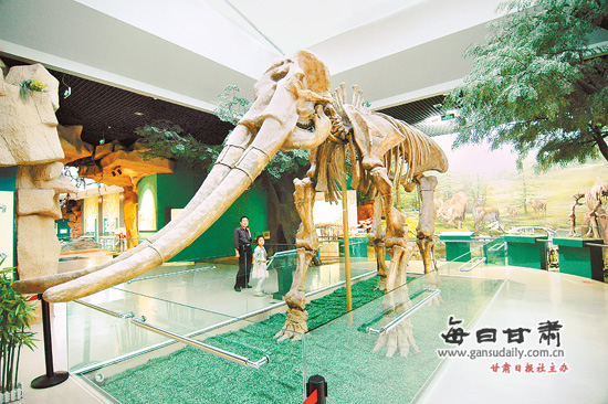 甘肅省博物館展出的黃河象化石復制品。 王文元攝