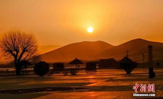 敦煌鳴沙山月牙泉羊年首日晨景醉游人