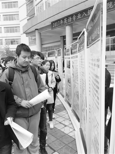 學(xué)生們正在觀看宣傳展板。記者 李升 實(shí)習(xí)生 趙蕊攝