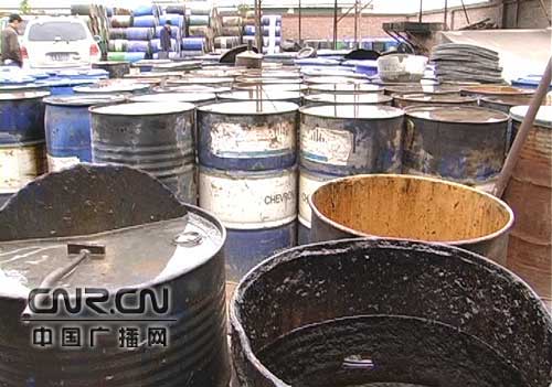 在這家私營(yíng)的小化工廠內(nèi),工業(yè)廢油隨處可見