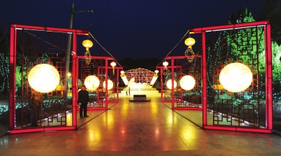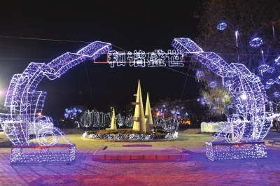 綠色希望雕塑周圍彩燈絢爛首席記者馬軍攝