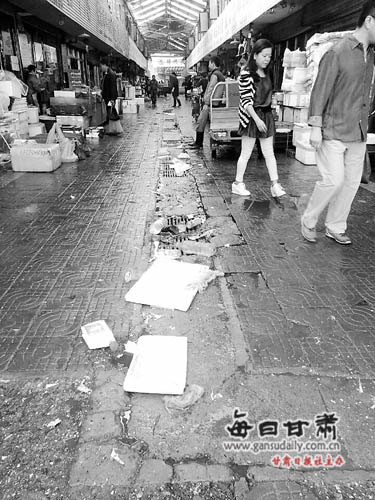央廣網(wǎng)蘭州9月16日消息 綠色市場(chǎng)作為蘭州市水產(chǎn)品及肉禽類產(chǎn)品的批發(fā)集散市場(chǎng),為豐富廣大市民菜籃子做出了很大貢獻(xiàn)。但該市場(chǎng)在經(jīng)營(yíng)過(guò)程中在食品安全、環(huán)境衛(wèi)生、消防安全等方面存在多重隱患,不但給經(jīng)營(yíng)者和市民帶來(lái)人身財(cái)產(chǎn)安全隱患,還嚴(yán)重影響市容市貌。近日,記者踏訪綠色市場(chǎng),臟亂差現(xiàn)象依然隨處可見(jiàn)。與之形成鮮明對(duì)比的是,與之僅一路之隔的新建的蘭州市首個(gè)新型專業(yè)農(nóng)副產(chǎn)品綜合交易市場(chǎng)卻遲遲得不到商戶的青睞。
