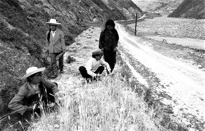 1996年,隴南市宕昌縣車?yán)l(xiāng)農(nóng)民在全鄉(xiāng)唯一的對外通道——僅能容納一輛汽車通過的土路旁勞作。新華社圖片