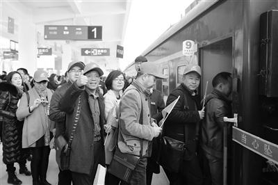 2016年12月26日,蘭渝鐵路岷縣至廣元段正式開通運(yùn)營,出行旅客在隴南火車站站臺排隊上車。 新華社圖片