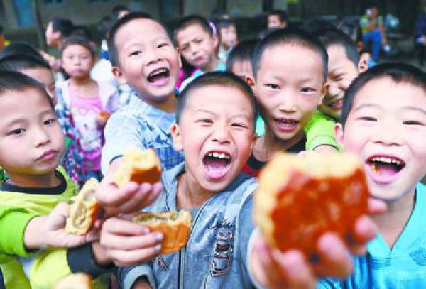 9月22日,留守兒童開心地品嘗剛領到的“愛心月餅”。當日,四川省華鎣市國家稅務局的愛心人士帶著月餅和關愛之情,來到偏遠的溪口鎮(zhèn)順天寨村小,看望學習生活在大山深處的42名留守兒童,與孩子們一起開展“品月餅,話中秋”活動,迎接即將來臨的中秋節(jié)。