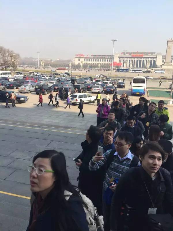 ↑ 政協(xié)十二屆四次會(huì)議新聞發(fā)布會(huì),記者排隊(duì)入場 ↑