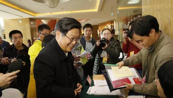 ↑ 政協(xié)委員王海波(前左)在駐地報(bào)到 來源:新華網(wǎng) ↑