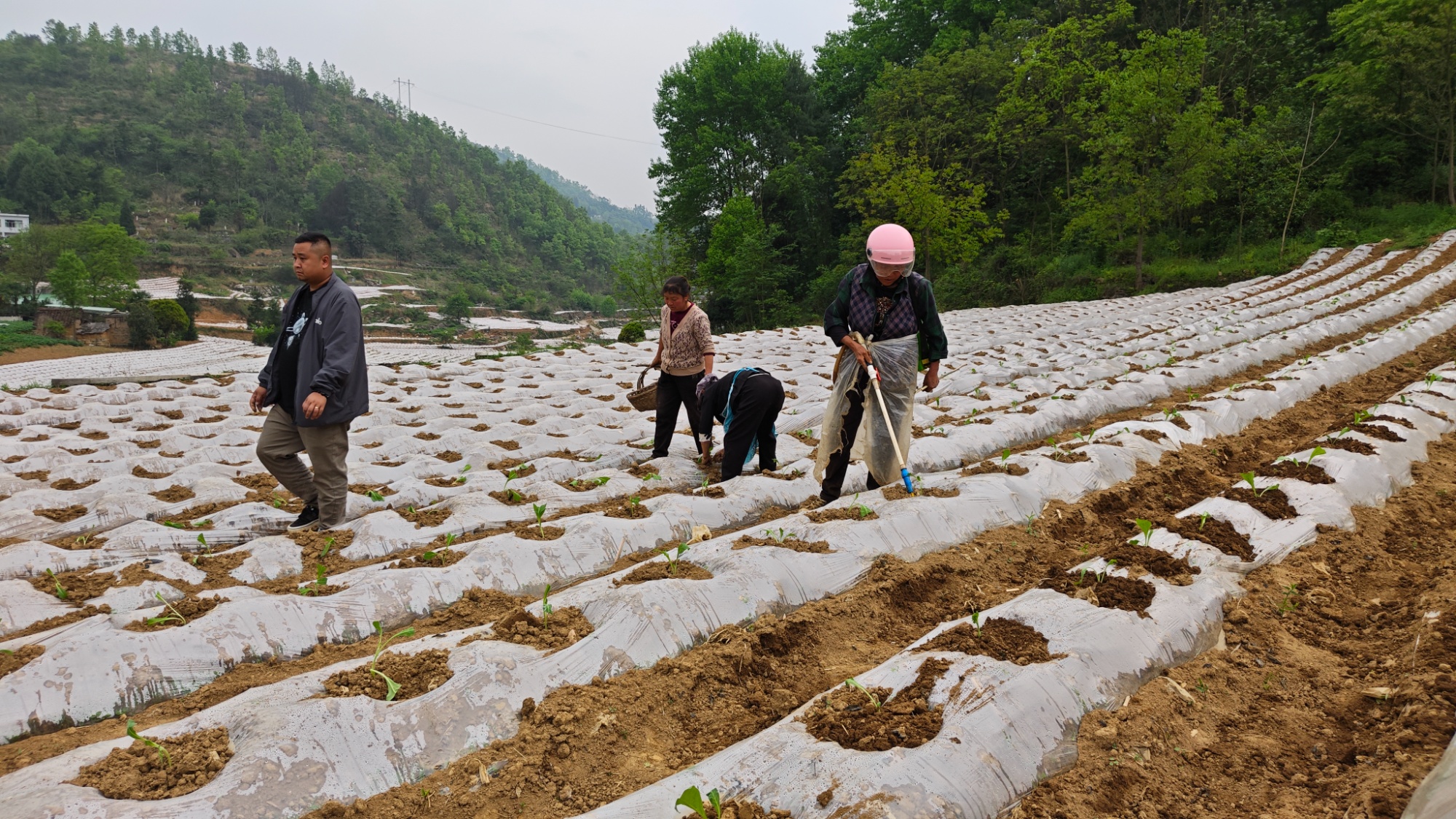 春日暖陽,田間地頭一派繁忙。4月19日,走進貴州省畢節(jié)市大方縣達溪鎮(zhèn)大灣社區(qū),煙農們正搶抓晴好天氣,有序開展起壟、覆膜、打孔、移栽、澆水等工作。一株株嫩綠的煙苗在手中傳遞,在田野里“安家落戶”,繪出一幅生動的春耕圖景。