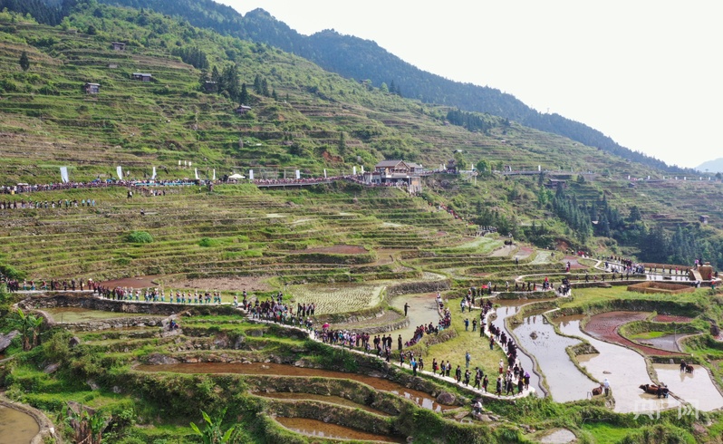 從江縣加榜梯田“開秧門”春耕活動(dòng)現(xiàn)場(chǎng)(央廣網(wǎng)發(fā) 羅京來(lái) 攝)