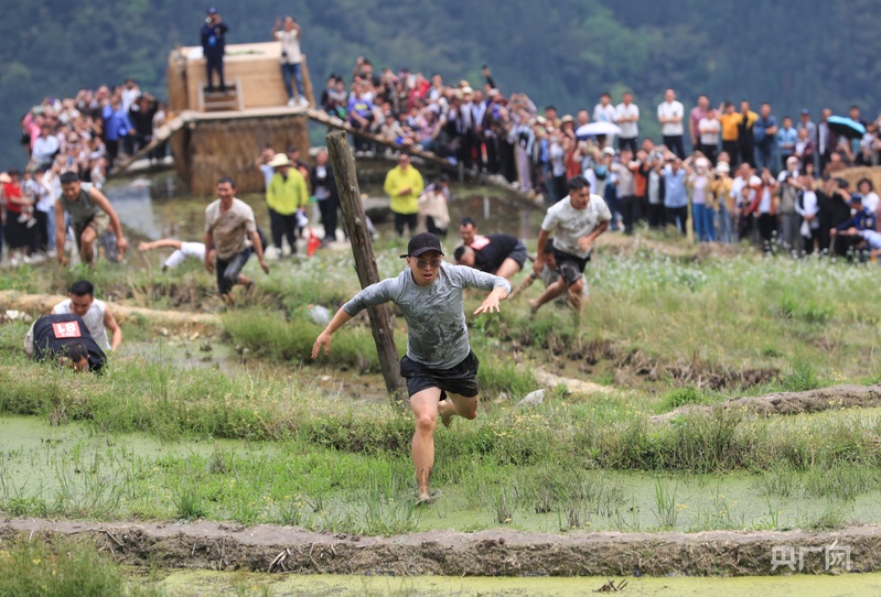 村民和游客一起參加爬梯田趣味比賽活動(dòng)(央廣網(wǎng)發(fā) 羅京來(lái) 攝)