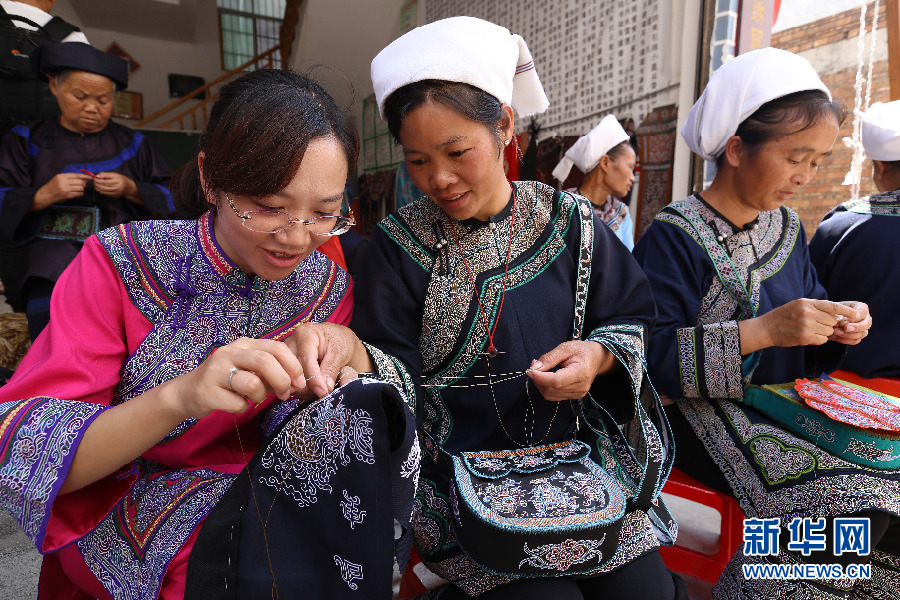 貴州三都縣中和鎮(zhèn)的水族婦女在進(jìn)行馬尾繡技藝培訓(xùn)。新華網(wǎng) 盧志佳 攝 “喜迎十九大·文脈頌中華”非物質(zhì)文化遺產(chǎn)大型網(wǎng)絡(luò)傳播活動走進(jìn)貴州黔南布依族苗族自治州三都水族自治縣的非遺項目——水族馬尾繡,這項傳承千年的技藝制作手法獨特,藝術(shù)造型豐富多彩,有刺繡“活化石”之稱。特寫鏡頭下“微觀”馬尾繡,其獨有的立體感、藝術(shù)感躍然眼前。 -