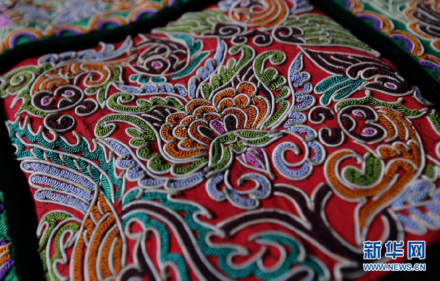 四川織繡和其他民族也有用馬尾為原材刺繡,但只有水族才如此集中地將之用于衣物和背帶等繡品。新華網(wǎng) 盧志佳 攝 -