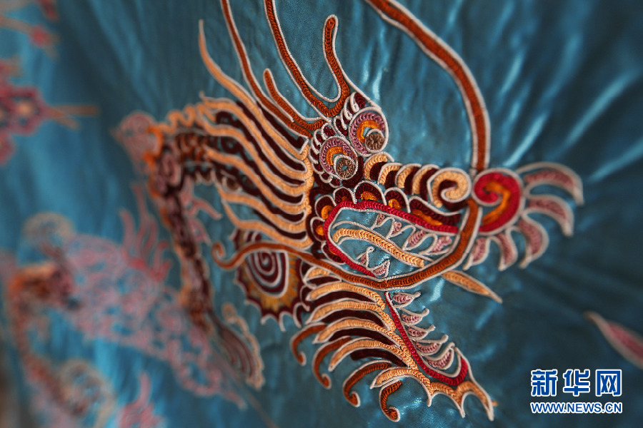 馬尾繡具有淺浮雕感,造型抽象而夸張。新華網(wǎng) 盧志佳 攝 -