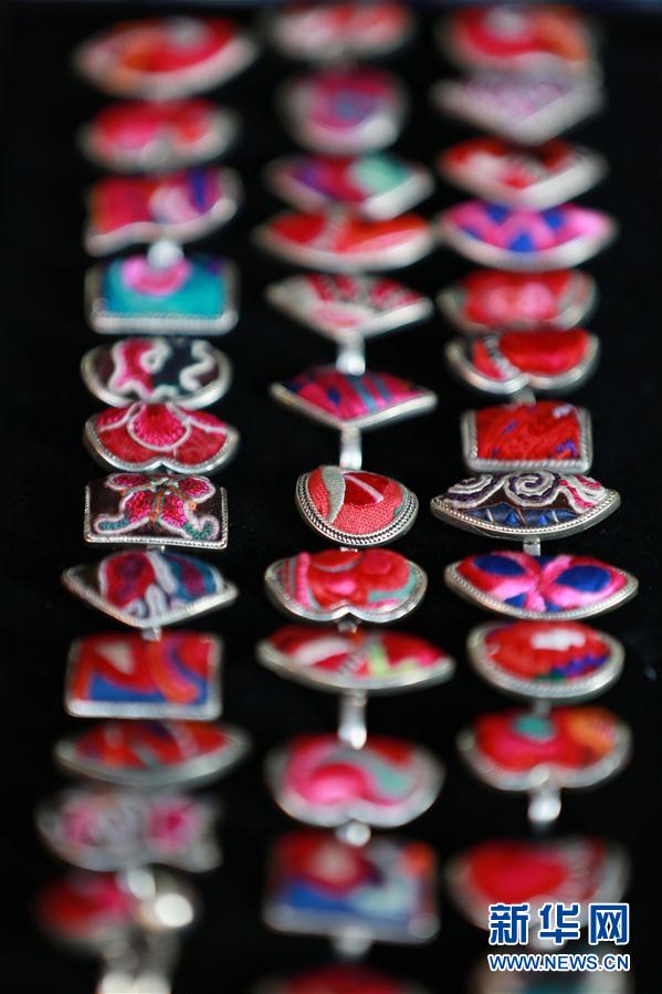 這是2月6日在貴州省黎平縣一家手工銀飾店拍攝的創(chuàng)意刺繡戒指。近年來,貴州省黔東南苗族侗族自治州黎平縣大力發(fā)展文化創(chuàng)意產(chǎn)業(yè),鼓勵和扶持當?shù)乩C娘、手工藝人把民族刺繡、銀飾等設計成為具有當?shù)匚幕厣纳唐,帶動群眾致富增收。新華社發(fā)(楊代富 攝)