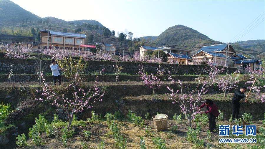 3月15日,遵義茅栗鎮(zhèn)的農(nóng)民在桃樹地里勞作。 2014年初以來,貴州省遵義茅栗鎮(zhèn)在“鄉(xiāng)村振興”建設(shè)中以改變種植結(jié)構(gòu)為突破口,積極帶動農(nóng)民增收致富。該鎮(zhèn)投入2000多萬元,在過境公路兩側(cè)的責任地里套種經(jīng)果林,建起了7000余畝共10公里長的桃、李優(yōu)質(zhì)經(jīng)果林長廊,帶動當?shù)剜l(xiāng)村百姓增收致富。 新華社記者 楊楹攝