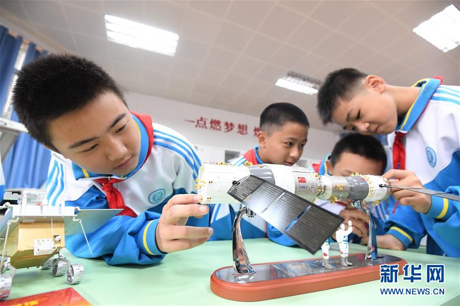 9月15日,貴州省貴陽(yáng)市第十四中學(xué)的學(xué)生在校園創(chuàng)客基地參觀天宮二號(hào)與神舟十一號(hào)交會(huì)對(duì)接模型。
