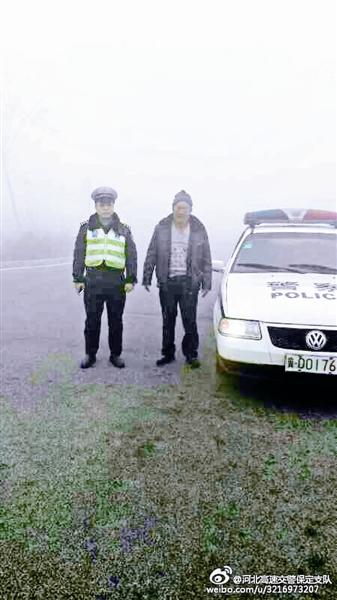 12月5日,河北高速交警總隊(duì)保定支隊(duì)官方微博發(fā)布微博稱,4日恰逢重大霧霾天氣,全省高速基本全部關(guān)閉,保定成了“重災(zāi)區(qū)”。一輛私家車霧霾天在高速上行駛,突然車上一位老人有情況發(fā)生需要下車解決,于是司機(jī)就把車停在了路邊?墒撬緳C(jī)等了半天就是不見老人回來,情急之下司機(jī)打電話給高速交警涿州大隊(duì)進(jìn)行求助。民警聽說有人在高速走失后就馬上進(jìn)入高速公路進(jìn)行尋找。經(jīng)過民警的搜尋,最后在北京琉璃河的便道上發(fā)現(xiàn)了老人,最終民警將老人安全地帶給了他的家人。