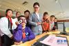 10月15日,在河北省廊坊市安次區(qū)圖書館視障閱讀區(qū),一名小學(xué)生在工作人員的幫助下體驗(yàn)一鍵式盲人閱讀系統(tǒng)。新華社發(fā)(劉學(xué)民 攝) 當(dāng)日是國(guó)際盲人節(jié),河北省廊坊市安次區(qū)開展“體驗(yàn)盲人閱讀 關(guān)愛盲人生活”活動(dòng),組織當(dāng)?shù)貙W(xué)生來到安次區(qū)圖書館視障閱讀區(qū)實(shí)地體驗(yàn),倡導(dǎo)全社會(huì)關(guān)愛盲人。 -