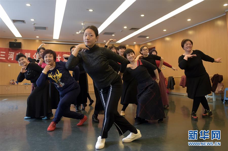 3月27日,指導老師(前)在三河市文化館排練廳帶領基層群眾健身骨干進行廣場舞培訓。近年來,河北省三河市文化志愿者協(xié)會加強群眾健身骨干力量培訓,定期舉辦培訓班,開展各類群眾性比賽活動,推動全民健身發(fā)展。新華社記者魯鵬攝