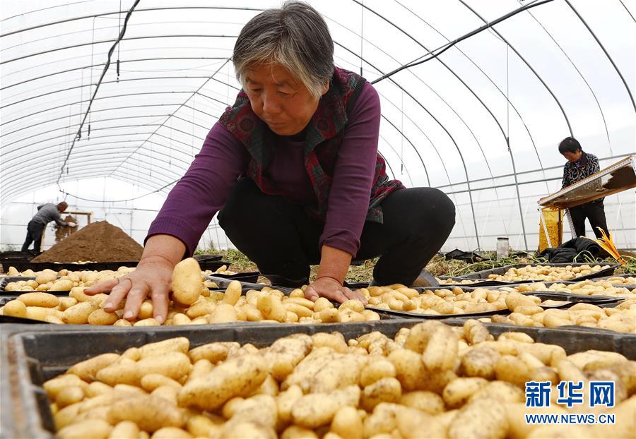 9月23日,張北縣小二臺鎮(zhèn)一家馬鈴薯育種中心的工人在大棚內(nèi)整理剛收獲的脫毒微型薯。 近年來,地處壩上地區(qū)的河北省張北縣因地制宜,積極推進馬鈴薯產(chǎn)業(yè)化發(fā)展,形成了馬鈴薯繁種育種、商品薯種植、倉儲、加工為一體的產(chǎn)業(yè)鏈,帶動農(nóng)民增收致富。 新華社記者楊世堯攝 -