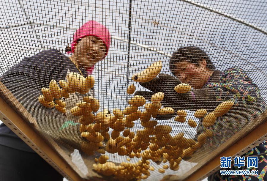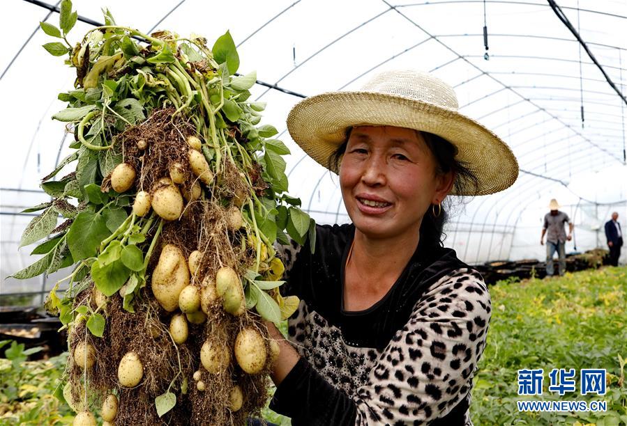 9月23日,張北縣小二臺鎮(zhèn)一家馬鈴薯育種中心的工人在大棚內(nèi)展示收獲的脫毒微型薯。 近年來,地處壩上地區(qū)的河北省張北縣因地制宜,積極推進馬鈴薯產(chǎn)業(yè)化發(fā)展,形成了馬鈴薯繁種育種、商品薯種植、倉儲、加工為一體的產(chǎn)業(yè)鏈,帶動農(nóng)民增收致富。 新華社記者楊世堯攝 -