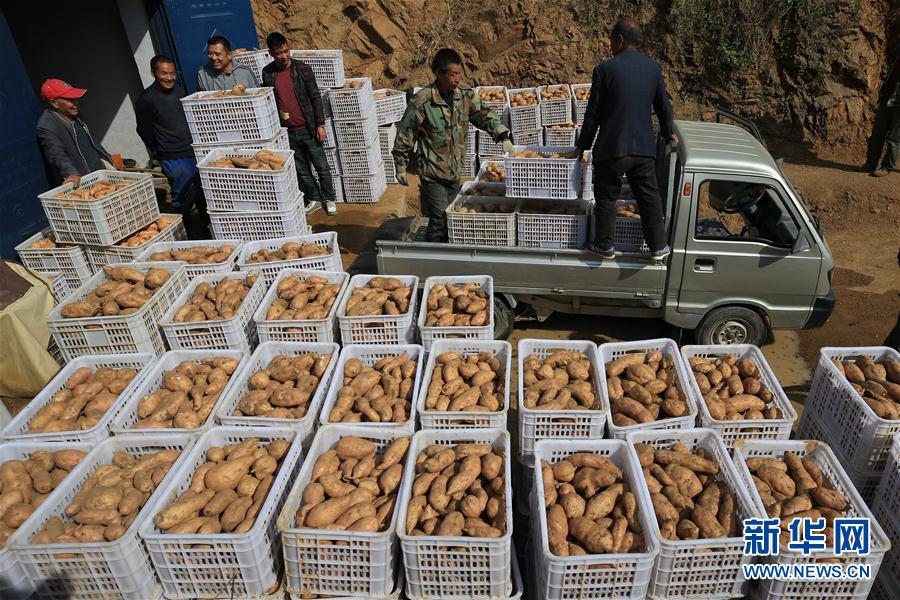 10月12日,河北省遷西縣農(nóng)民在運(yùn)送山地紅薯。新華社發(fā)(王愛軍 攝) -