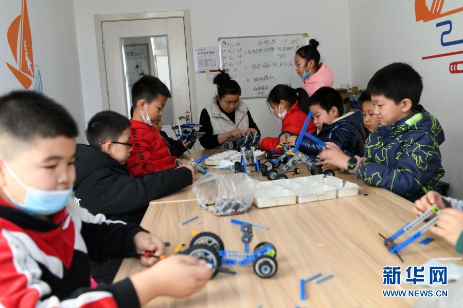 11月22日,學(xué)生們在青少年校外活動中心組裝機器人。
