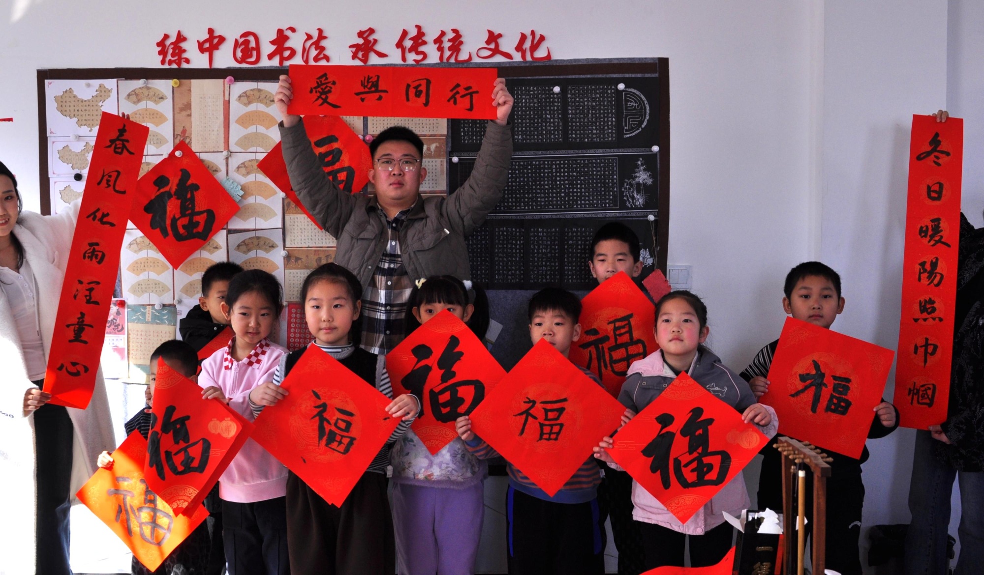 活動(dòng)現(xiàn)場(chǎng),志愿者老師首先為孩子們講解春節(jié)傳統(tǒng)習(xí)俗與“!弊治幕瘻Y源,隨后手把手指導(dǎo)握筆、運(yùn)筆等書法基礎(chǔ)。紅紙鋪展,墨香四溢,孩子們?cè)谥驹刚吲惆橄聯(lián)]毫潑墨。橫豎撇捺間,一幅幅寓意吉祥的春聯(lián)與飽滿厚重的“!弊周S然紙上。