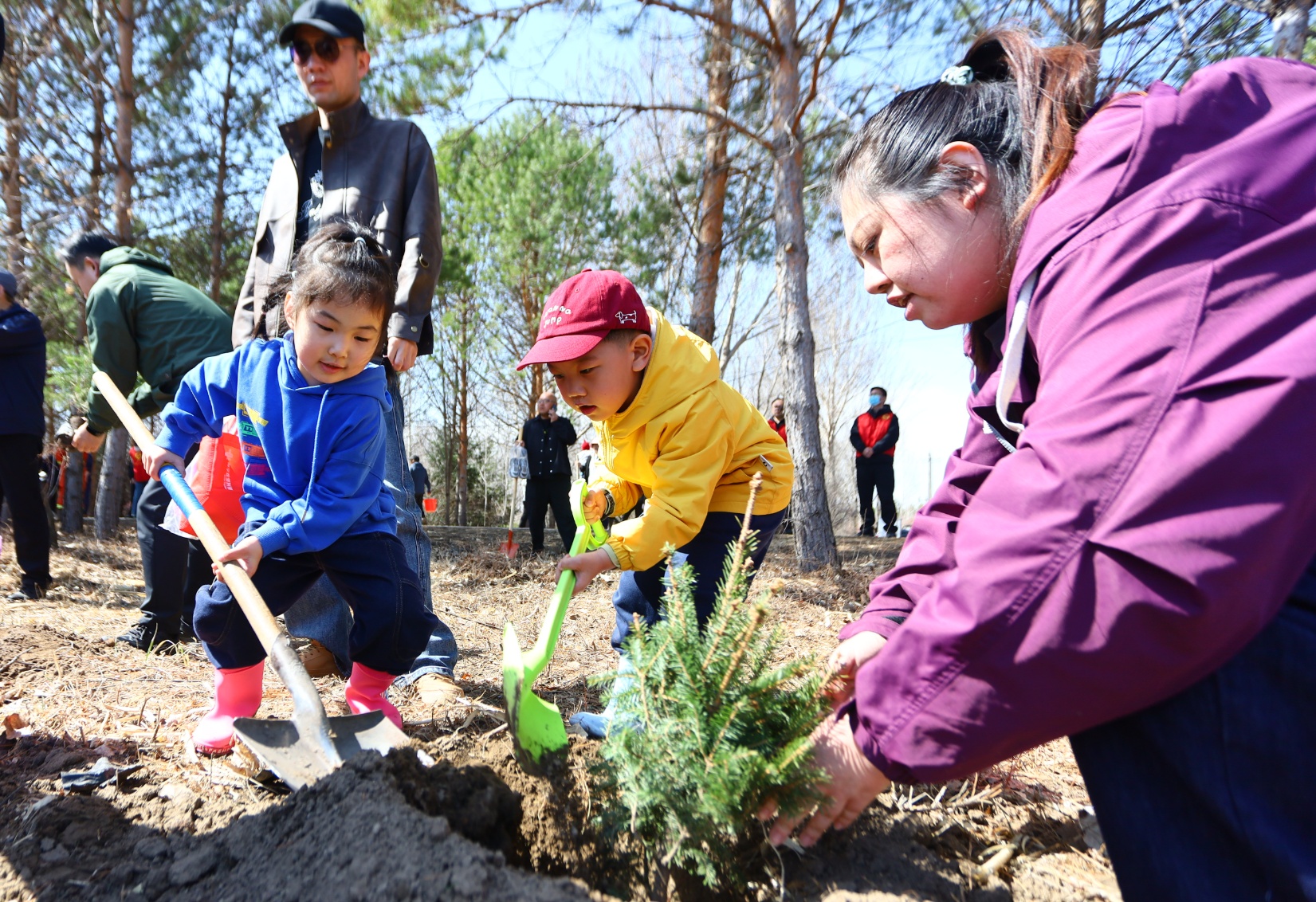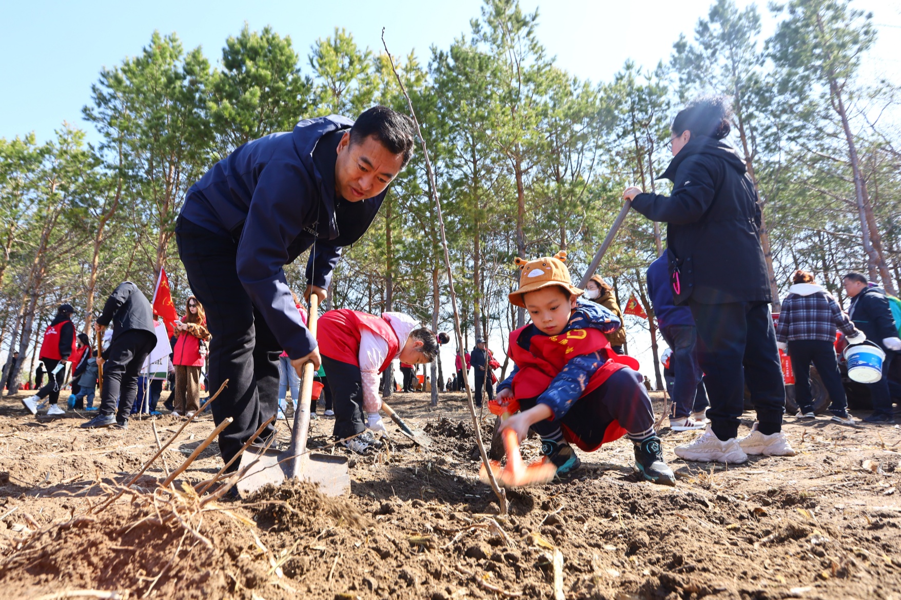 活動現(xiàn)場,志愿者們分工明確、干勁十足,機(jī)關(guān)黨員干部帶頭揮鍬鏟土;林業(yè)部門的專業(yè)志愿者全程跟進(jìn)指導(dǎo)、示范規(guī)范操作;青年志愿者穿梭其間搬運(yùn)苗木……