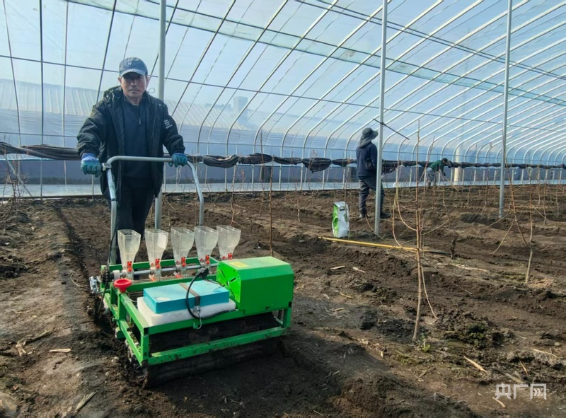 蔬菜播種機(jī)播種(央廣網(wǎng)記者 陳顯春 攝)