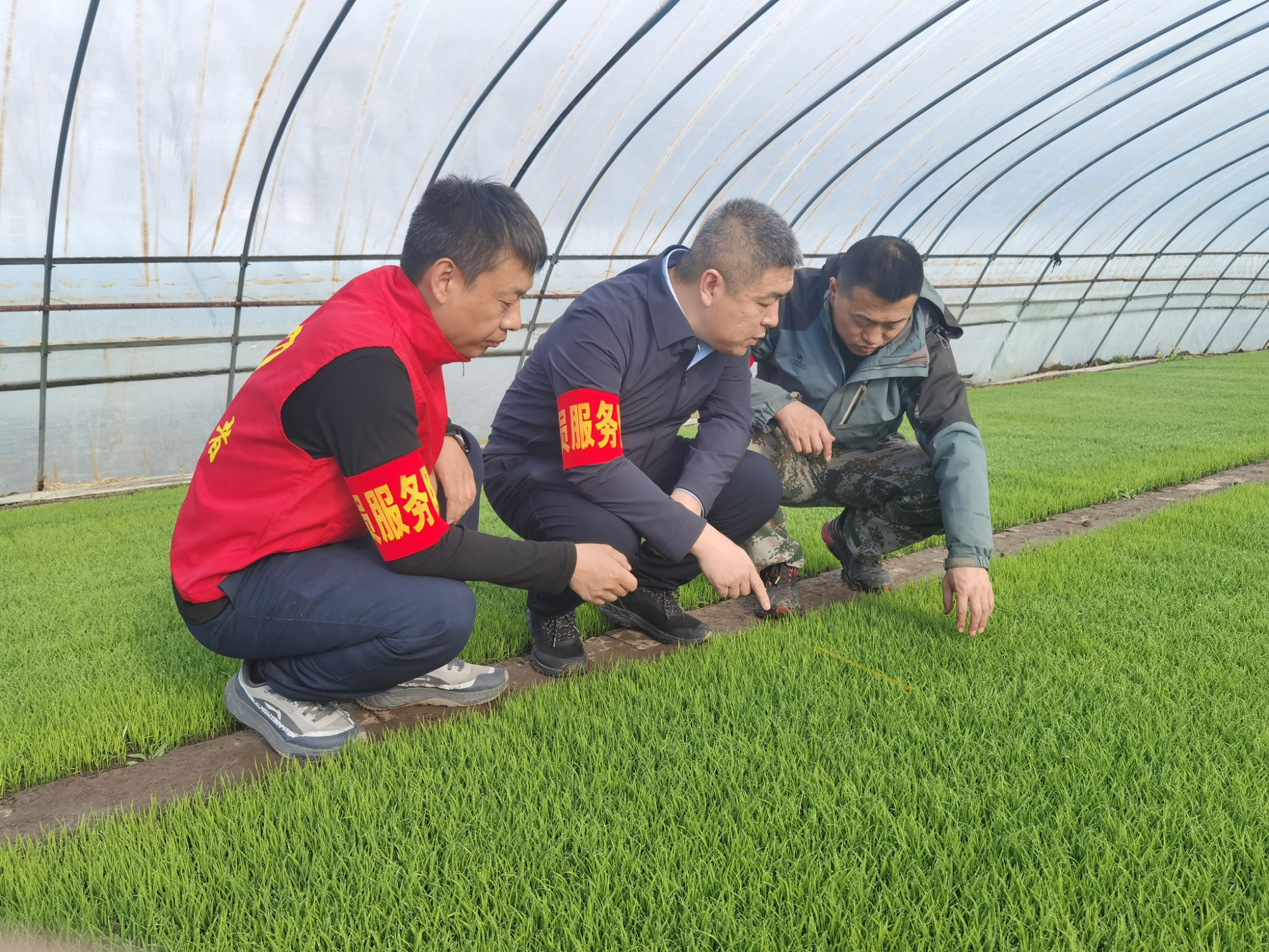 農(nóng)業(yè)技術(shù)人員走進(jìn)育秧大棚(莊村夫 攝)