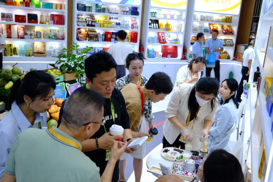 走進(jìn)海南館, 琳瑯滿目的展臺(tái)中,“可可的! 展位以清新藍(lán)白主色調(diào)搭配熱帶可可元素的風(fēng)格獨(dú)樹一幟。展臺(tái)前的試吃區(qū)排起長(zhǎng)隊(duì),濃郁的可可香混合著椰子、斑斕、熱帶水果的清新氣息,吸引大批觀眾駐足品鑒。工作人員熱情地遞上生巧、流心巧克力、海南風(fēng)物系列等多款產(chǎn)品,現(xiàn)場(chǎng)問詢、洽談合作的客商絡(luò)繹不絕,拍照打卡、掃碼關(guān)注的觀眾接連不斷,現(xiàn)場(chǎng)氛圍持續(xù)火熱。