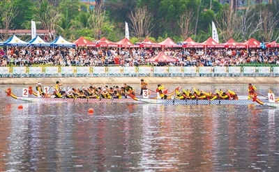 4月20日,2026年“海南三月三·山海同心圓”東方主會場重點活動——“活力東方”龍舟公開賽在東方市北黎河激情開賽,為海南“三月三”活動增添了濃厚的競技氛圍。賽事吸引了全省12支隊伍同場競技。海南日報全媒體記者 李天平 攝