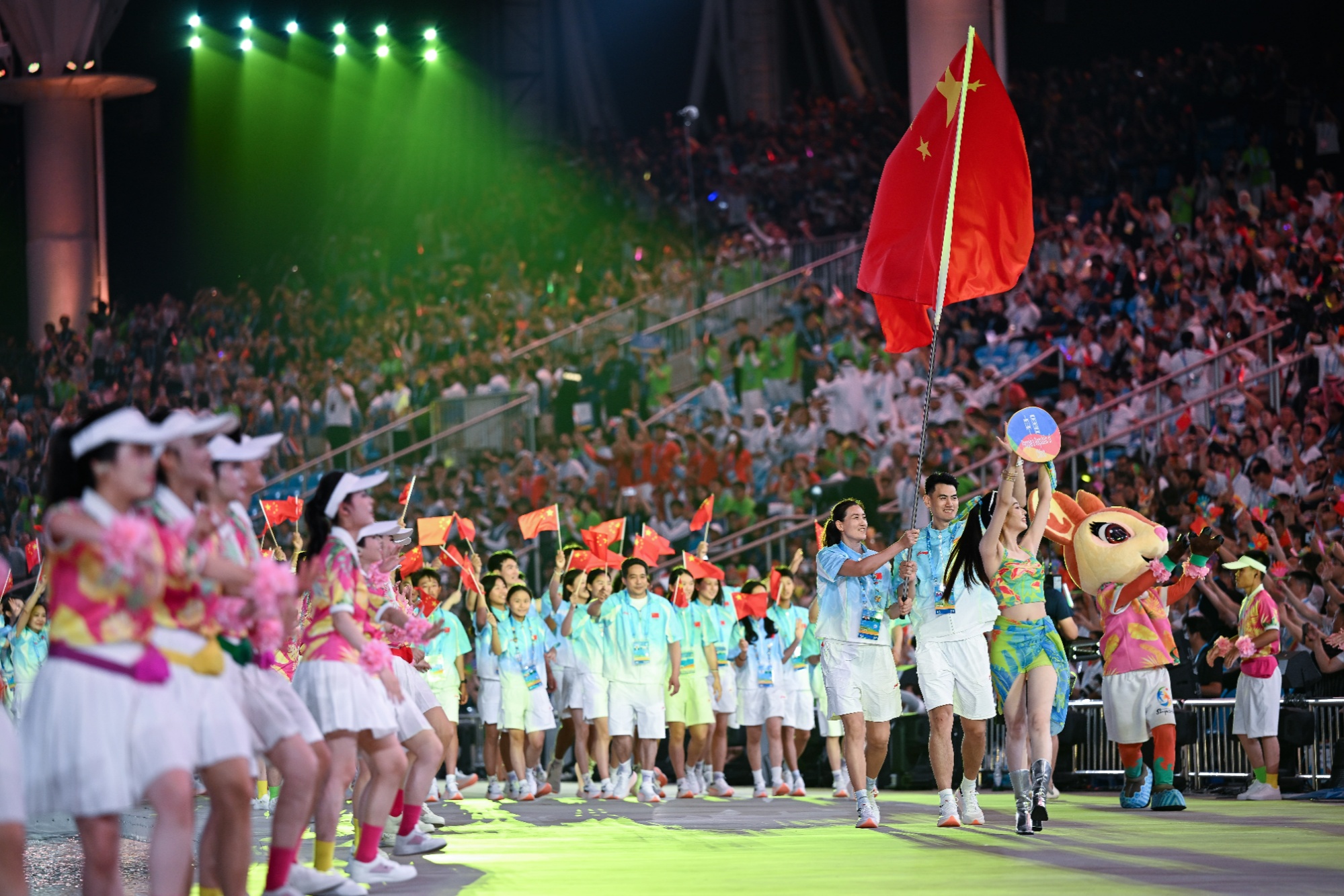 中國體育代表團入場(央廣網(wǎng)發(fā) 亞沙會執(zhí)委會供圖)