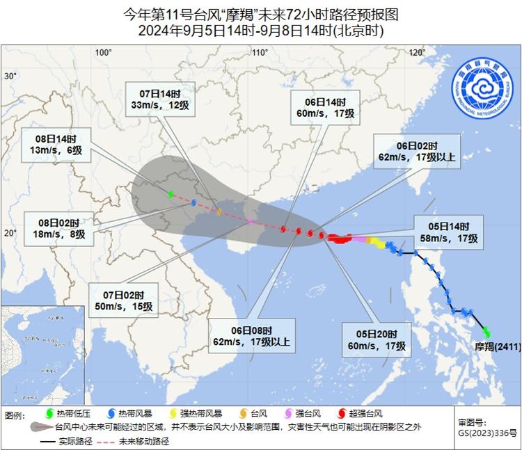 最新!超強(qiáng)臺(tái)風(fēng)“摩羯”將于9月6日下午到夜間在海南瓊海到廣東電白登陸