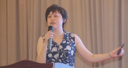 圖為:綠色裝配農(nóng)房產(chǎn)業(yè)技術(shù)創(chuàng)新聯(lián)盟理事長(zhǎng)-魏曉梅女士 發(fā)表重要講話(周珊·攝)