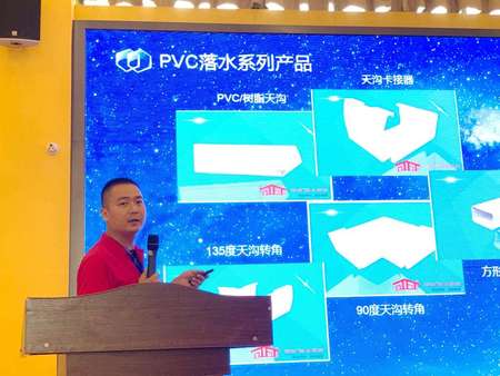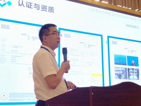 圖為:杭州可成建筑材料有限公司銷售總監(jiān)-陳見(jiàn)喜先生分享主講“集成排水天溝系統(tǒng)在輕鋼建筑中的應(yīng)用”(周珊·攝)