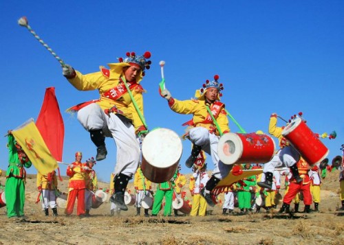 蘭州太平鼓,是首批國(guó)家物質(zhì)文化遺產(chǎn),它是一種具有濃郁西北風(fēng)情的漢族鼓舞。素有“天下第一鼓”的美譽(yù),與安塞腰鼓、威風(fēng)鑼鼓、開(kāi)封盤鼓、鳳陽(yáng)花鼓并稱為“中華五鼓”。曾作為重要節(jié)目亮相第十一屆亞運(yùn)會(huì)、建國(guó)五十周年文藝晚會(huì)、第四屆“北京2008”奧林匹克文化節(jié)、2010年上海世博園巡游等。
