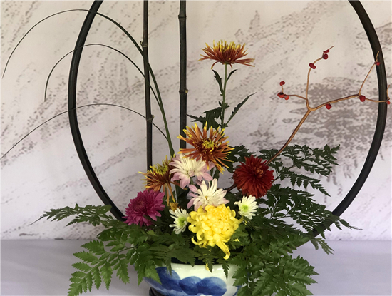 在中國(guó)翰園的插花現(xiàn)場(chǎng),百余組插花藝術(shù)作品異彩紛呈。中國(guó)插花花藝協(xié)會(huì)名譽(yù)會(huì)長(zhǎng)、北京插花藝術(shù)研究會(huì)會(huì)長(zhǎng)王蓮英帶領(lǐng)她的團(tuán)隊(duì),以及河南省插花藝術(shù)大師就地取材,用蘆葦、枯荷、蔬菜等與菊花搭配,營(yíng)造出或意境清新悠遠(yuǎn)、或飽含美好寓意的插花藝術(shù)作品。游客朋友們更是紛紛拿出相機(jī)、手機(jī),將一幅幅美好的畫(huà)面用鏡頭記錄下來(lái)。據(jù)了解,中國(guó)菊花插花藝術(shù)展自10月18日開(kāi)幕以來(lái),吸引了眾多游客,成為開(kāi)封賞菊的一大亮點(diǎn)。