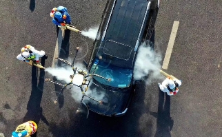 李大偉所在救援隊(duì)正在做車輛消殺工作