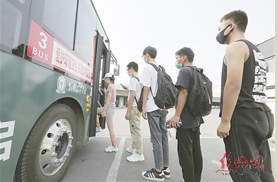 圖④ 8月30日,市民排隊乘公交車。