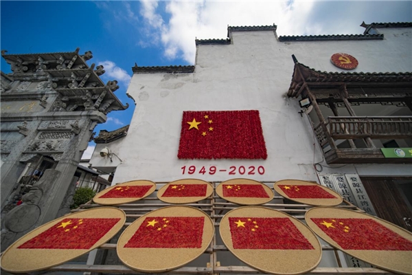 江灣廣場曬秋,用辣椒和玉米拼成國旗圖案,以當(dāng)?shù)卮迕裉赜械那飼穹绞綉c祝祖國71歲生日。逛累了就到公社食堂買一張飯票,吃一回大鍋飯,回憶一下60、70年代的時(shí)光。