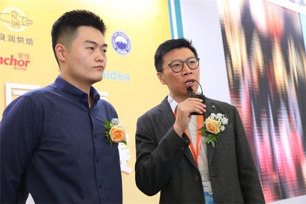 豆果美食創(chuàng)始人兼CEO王宇翔先生,良潤烘焙、頂焙良品品牌良潤公司副總經理 朱一鳴先生接受記者采訪