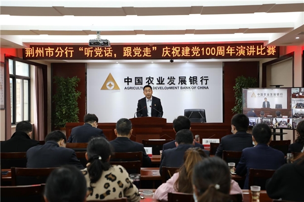 百年大黨,征途如虹。為隆重慶祝中國共產(chǎn)黨百年華誕,深入推進(jìn)黨史學(xué)習(xí)教育,引導(dǎo)黨員干部學(xué)史明理、學(xué)史增信、學(xué)史崇德、學(xué)史力行,3月31日,農(nóng)發(fā)行荊州市分行舉辦了“聽黨話、跟黨走”慶祝建黨100周年演講比賽,來自全市7個支行黨支部和2個機(jī)關(guān)黨支部共10名選手參賽。